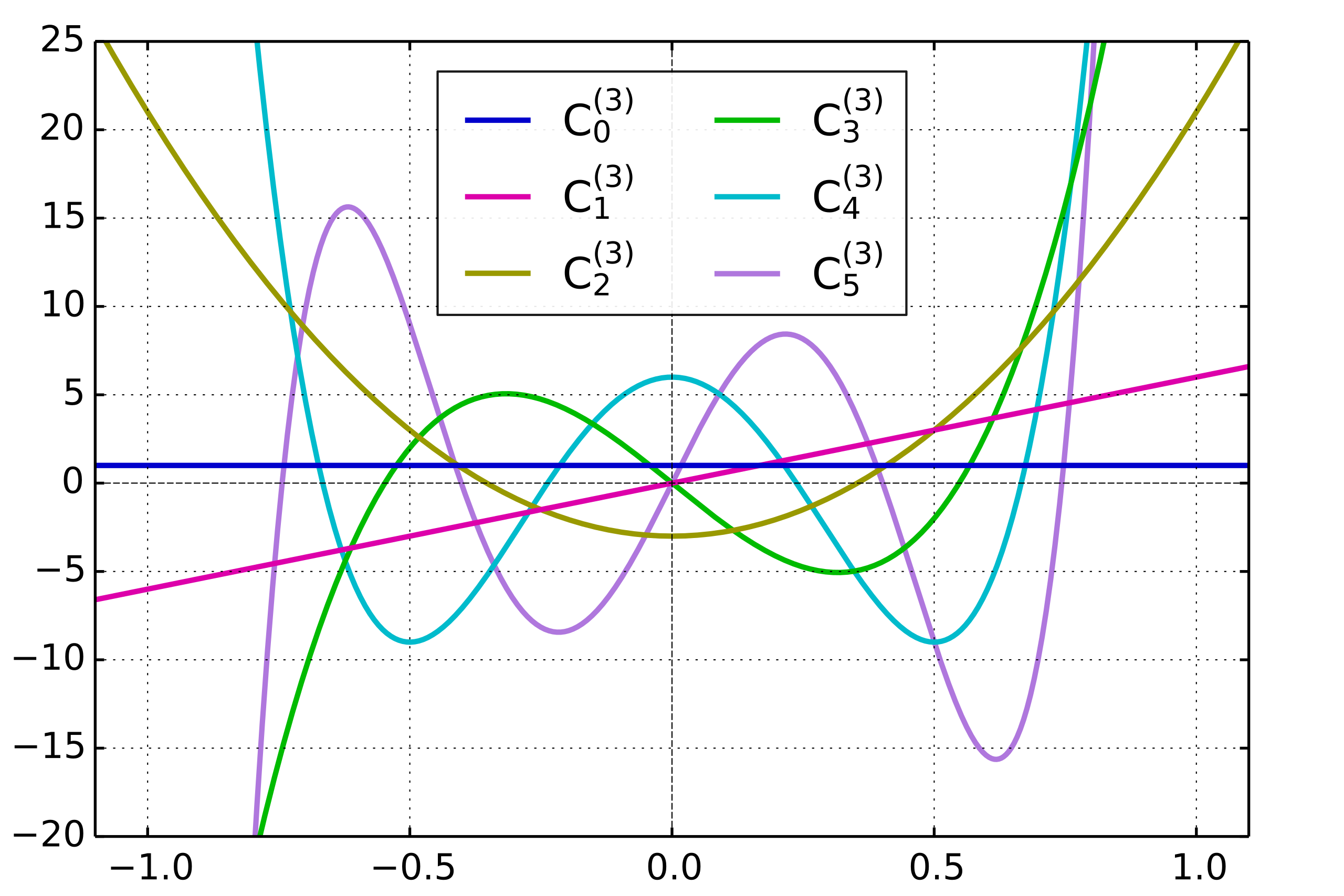 Such zonal functions retain full rotational symmetry around that axis and reduce the spherical Laplacian to a one-dimensional operator. Its eigenfunctions turn out to be polynomials on the interval \([-1,1]\) with a very specific weight. These polynomials are the Gegenbauer polynomials, which generalize several classical families of orthogonal polynomials, including the Legendre and Chebyshev polynomials.